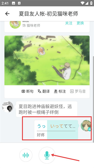 2、支持單句跟讀、重復(fù)練習(xí),搭配羅馬音、五十音標(biāo)注及標(biāo)準(zhǔn)斷句,中日翻譯加持,助力精準(zhǔn)掌握發(fā)音語義。