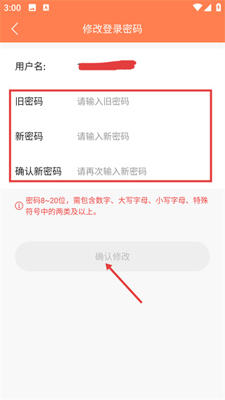 4、在修改登錄密碼頁(yè)面,依次輸入舊密碼、符合復(fù)雜度要求的新密碼及確認(rèn)新密碼后,點(diǎn)擊“確認(rèn)修改”完成密碼更新。
