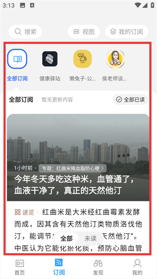 3、完成配置后進(jìn)入訂閱頁面,可查看已訂閱頻道的內(nèi)容更新,還能對訂閱內(nèi)容進(jìn)行已讀等狀態(tài)管理。