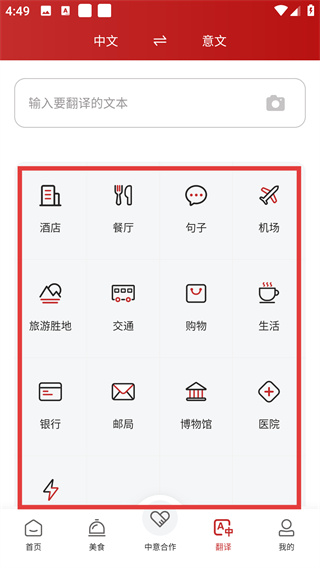 5、內(nèi)置雙語互譯工具,支持中文與意大利語快速互譯,還能播放單詞發(fā)音,高效解決語言溝通障礙,滿足即時(shí)翻譯需求。