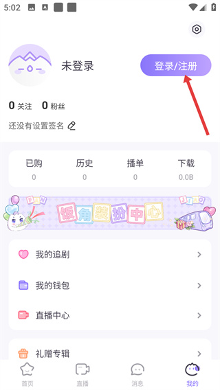 1、在“我的”頁面點擊【登錄/注冊】按鈕,進入飯角的手機號注冊登錄頁面,準備進行賬號登錄操作。