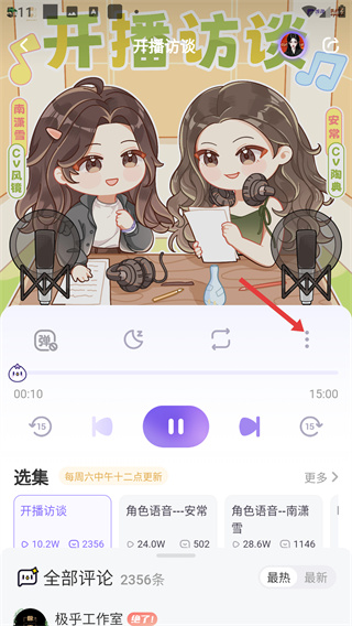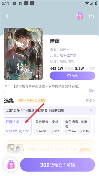 2、在《暗癮》詳情頁的選集板塊中,點(diǎn)擊“開播訪談”選項(xiàng),進(jìn)入該內(nèi)容對應(yīng)的音頻播放頁面。