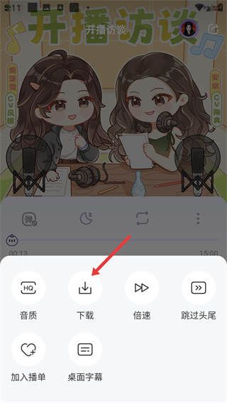 4、在彈出的功能菜單里選擇“下載”選項(xiàng),即可啟動該音頻內(nèi)容的離線下載流程。