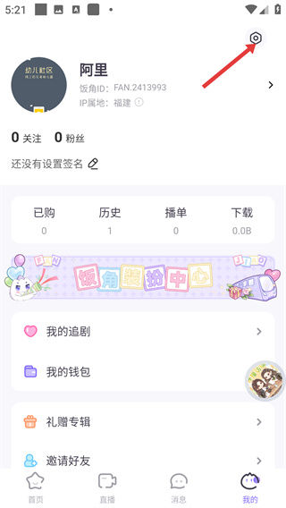2、在個人中心頁面點擊右上角設(shè)置按鈕,進(jìn)入設(shè)置頁面。