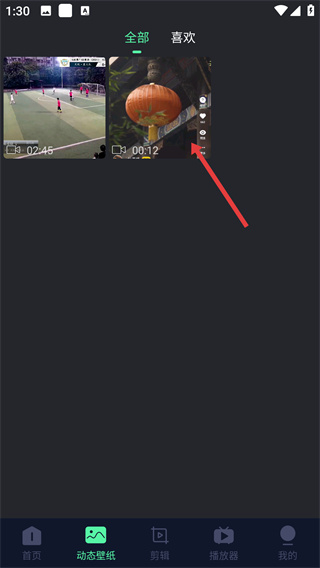 2、進入頁面后,在【全部】標簽下選取視頻,點擊對應視頻即可進入該壁紙的詳情頁面。