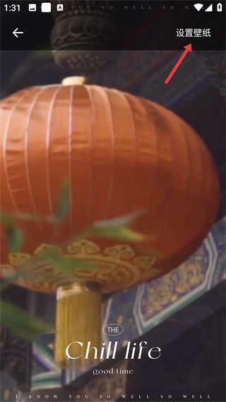 4、在當前詳情頁面點擊右上角的【設置壁紙】選項,即可完成該動態(tài)壁紙在設備上的應用操作。