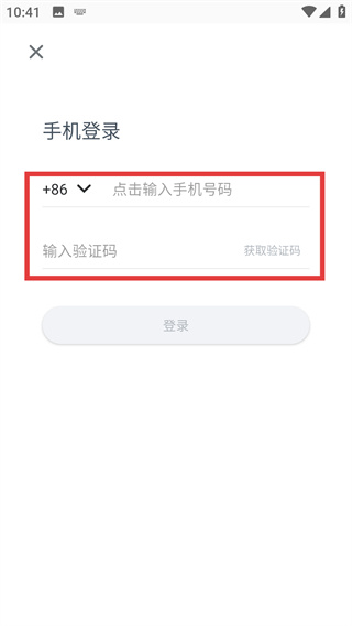 3、在手機登錄頁面,先輸入手機號碼,再點擊“獲取驗證碼”并填寫收到的驗證碼,完成信息錄入。