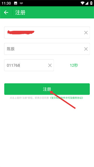 4、確認(rèn)【手機(jī)號碼】【姓名】【驗(yàn)證碼】信息完整且正確后,點(diǎn)擊底部【注冊】按鈕,完成賬號注冊流程。