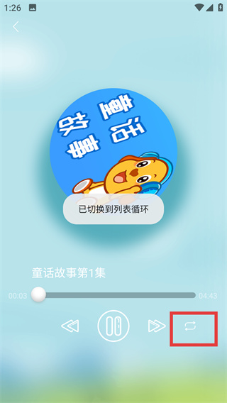 3、進(jìn)入【童話故事】播放界面后,點(diǎn)擊操作界面中的循環(huán)模式按鈕。