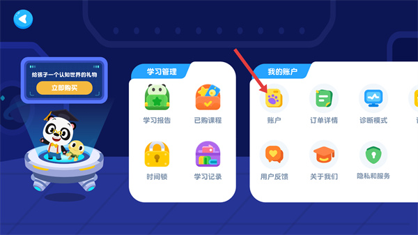 2、在【家長中心】頁面找到【我的賬戶】板塊,點擊下方的【賬戶】選項,進入賬號設(shè)置界面。