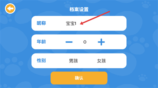 4、在【檔案設(shè)置】頁面點擊【昵稱】,修改寶寶的名字,完成后點擊【確認】保存設(shè)置即可完成寶寶名字的修改操作。