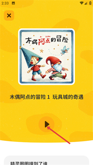 2、在故事詳情界面,點(diǎn)擊播放按鈕,即可開始播放【木偶阿點(diǎn)的冒險(xiǎn)1-玩具城的奇遇】內(nèi)容。