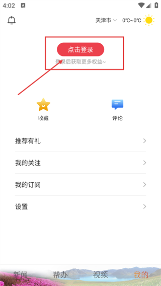2、進(jìn)入個(gè)人中心后,點(diǎn)擊頁(yè)面中的【點(diǎn)擊登錄】按鈕,即可進(jìn)入登錄與注冊(cè)的操作頁(yè)面,獲取更多功能權(quán)益。