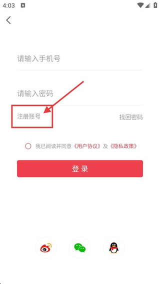 3、在登錄頁(yè)面內(nèi),找到【注冊(cè)賬號(hào)】選項(xiàng)并點(diǎn)擊,即可跳轉(zhuǎn)至賬號(hào)注冊(cè)的信息填寫(xiě)界面。