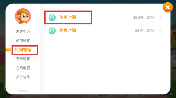 3、進(jìn)入設(shè)置后,選擇【時(shí)間管理】板塊,找到【使用時(shí)間】選項(xiàng),準(zhǔn)備調(diào)整軟件的單次使用時(shí)長(zhǎng)。