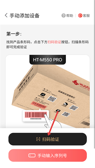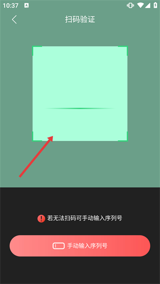 3、在手動添加設(shè)備頁面,點(diǎn)擊“掃碼驗(yàn)證”按鈕,進(jìn)入掃碼驗(yàn)證的操作界面。