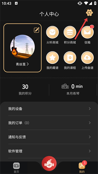 2、在個人中心頁面,點擊右上角的設置按鈕,進入應用的設置頁面。