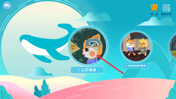 2、進(jìn)入情緒繪本頁(yè)面后,選擇“認(rèn)識(shí)情緒”內(nèi)容模塊,該模塊是情緒啟蒙的基礎(chǔ)環(huán)節(jié),以具象化形式講解情緒的概念與分類。