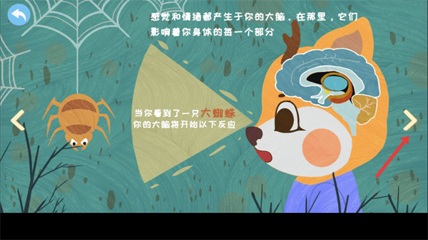 4、點(diǎn)擊頁(yè)面右側(cè)箭頭,查看情緒產(chǎn)生的生理機(jī)制講解,輔助理解情緒的產(chǎn)生邏輯,深化情緒認(rèn)知。
