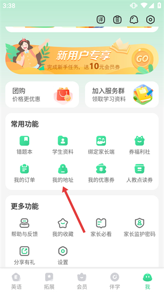 2、在個(gè)人中心的【常用功能】板塊里,找到【我的地址】選項(xiàng)并點(diǎn)擊,進(jìn)入地址管理相關(guān)頁(yè)面。