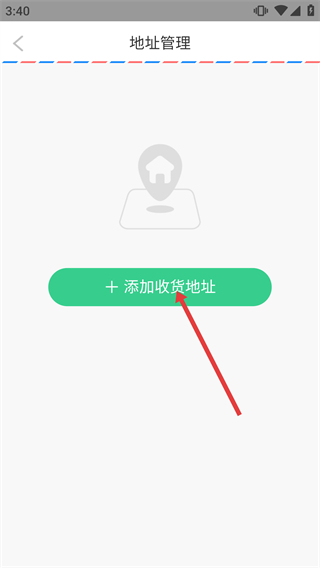 3、進(jìn)入【地址管理】頁(yè)面后,點(diǎn)擊【+添加收貨地址】按鈕,進(jìn)入新增收貨地址的表單界面。