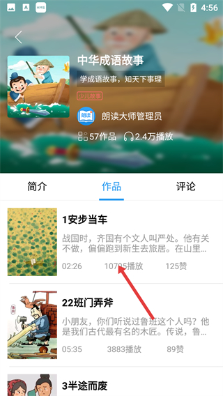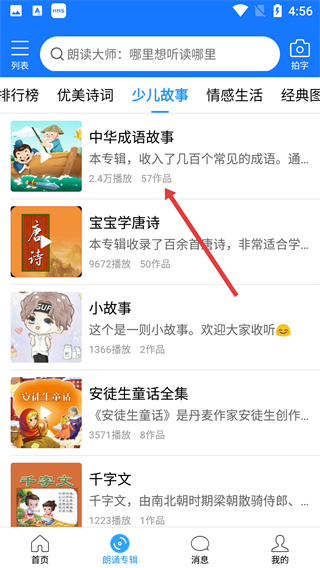 2、在朗讀專輯頁面切換至【少兒故事】分類,選擇【中華成語故事】專輯,進(jìn)入該專輯的詳情界面。