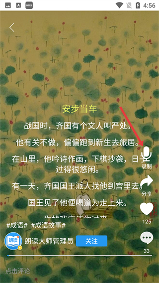 4、進(jìn)入作品的內(nèi)容詳情頁后,可查看文字內(nèi)容,同時(shí)使用頁面中的朗讀功能,收聽該作品的音頻內(nèi)容。
