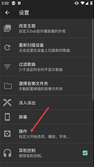 3、在設(shè)置頁(yè)面中點(diǎn)擊【操作】選項(xiàng),可進(jìn)入自定義播放、字體等操作的配置界面。