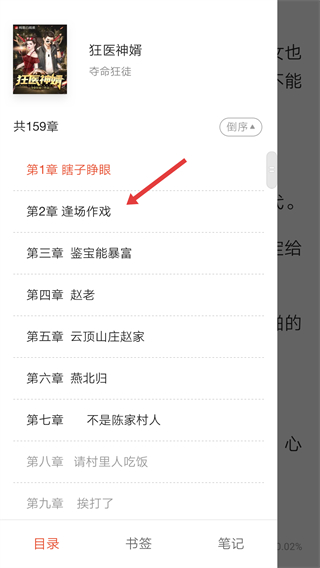 4、在章節(jié)列表中選擇【第2章逢場(chǎng)作戲】,即可跳轉(zhuǎn)至該章節(jié)的閱讀內(nèi)容,繼續(xù)小說(shuō)閱讀進(jìn)程。