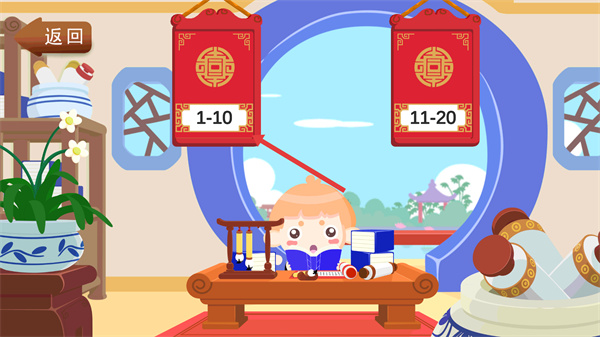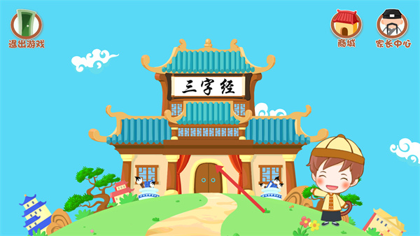 1、進(jìn)入三字經(jīng)主題界面后,點擊建筑進(jìn)入章節(jié)范圍選擇頁面。