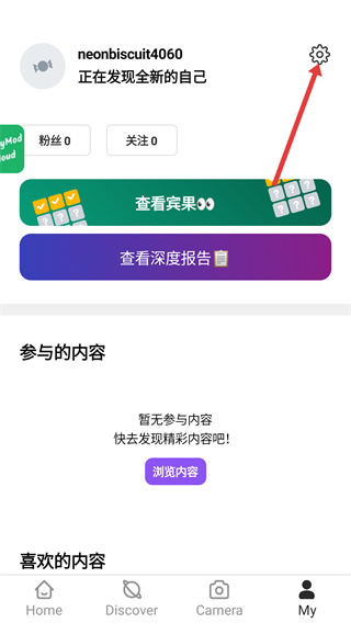 1、在個人中心頁面,點擊右上角的設(shè)置圖標,進入通知設(shè)置頁面。