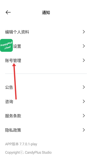 2、進入通知頁面后,選擇【賬號管理】選項,進入賬號相關(guān)的管理界面。