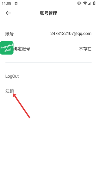 3、在賬號管理頁面,點擊【注銷】選項,觸發(fā)確認彈窗。