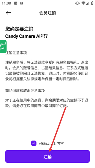 4、勾選“已確認以上內(nèi)容”后,點擊【注銷】按鈕,完成該賬號的注銷操作。