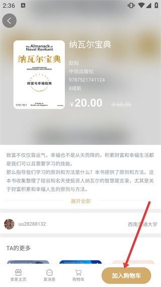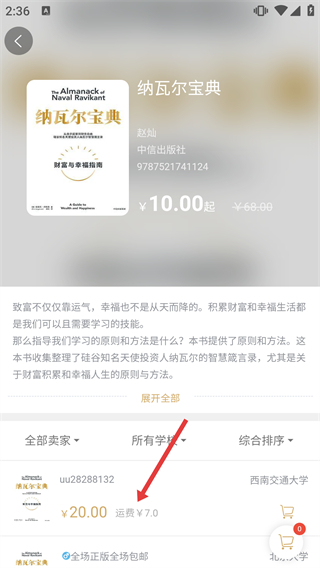 2、在《納瓦爾寶典》的綜合詳情頁,選擇對應賣家的書籍條目,進入該賣家的書籍詳情頁面,可查看書籍成色等信息。
