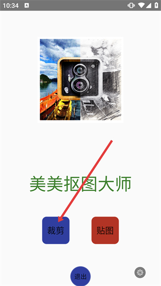 1、進入【美美摳圖大師】界面,找到【裁剪】按鈕,點擊該按鈕可開啟圖片摳圖的前期準備操作。
