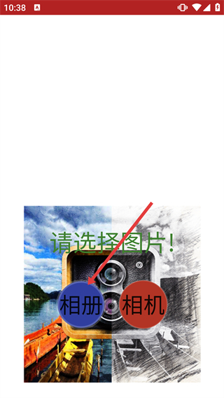 2、點擊【裁剪】后會提示【請選擇圖片!】,可通過【相冊】-【相機】選項,選擇要摳圖的圖片源。