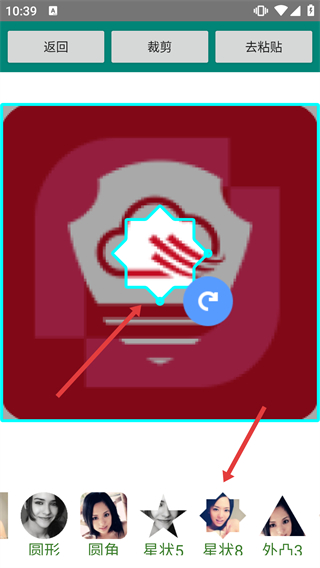 4、進入編輯界面后,可選用【星狀5】等形狀工具調(diào)整區(qū)域,搭配【裁剪】按鈕完成圖片的摳圖形狀設(shè)置。