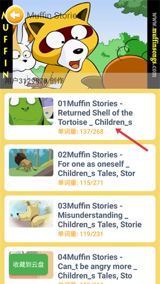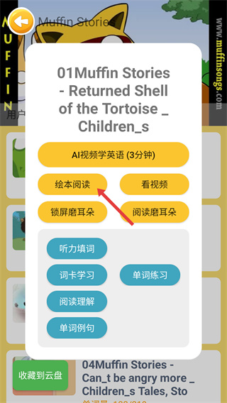 1、在資源頁面,點擊對應(yīng)對應(yīng)的資源,進入MuffinStories列表頁,選擇目標故事,可查看對應(yīng)單詞量進度。