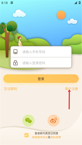 2、進(jìn)入登錄頁(yè)面,可填寫(xiě)【請(qǐng)輸入手機(jī)號(hào)碼】-【請(qǐng)輸入登錄密碼】登錄,或點(diǎn)擊【用戶注冊(cè)】選項(xiàng)開(kāi)啟賬號(hào)注冊(cè)流程。