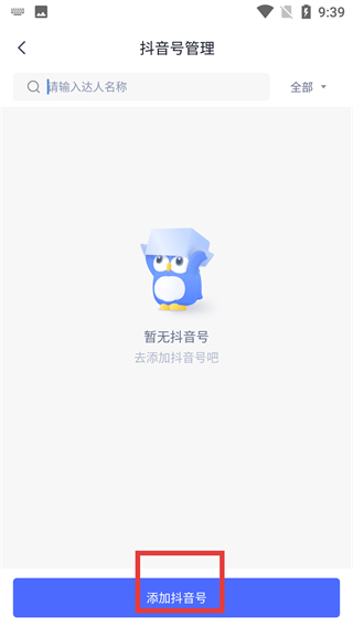 3、在抖音號管理頁面,看到【暫無抖音號】提示后,點擊底部【添加抖音號】按鈕,準備關(guān)聯(lián)賬號。
