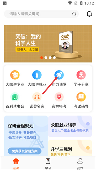 1、進入選課頁面,找到【能力課堂】功能選項,點擊該選項進入對應的課程分類頁面。