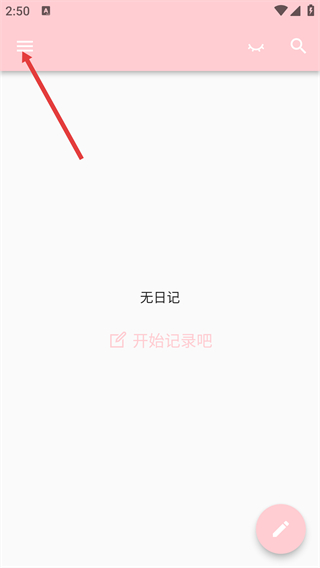 1、進(jìn)入日記應(yīng)用主界面,點(diǎn)擊左上角的菜單按鈕,打開功能側(cè)邊欄。