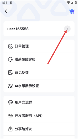 2、進(jìn)入個人中心頁面后,點(diǎn)擊用戶名旁的箭頭按鈕,進(jìn)入展示UID等內(nèi)容的賬戶信息頁面。