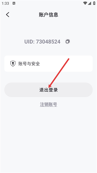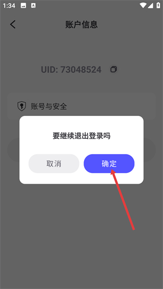 3、在賬戶信息頁面,點(diǎn)擊【退出登錄】選項,觸發(fā)“要繼續(xù)退出登錄嗎”的確認(rèn)彈窗。