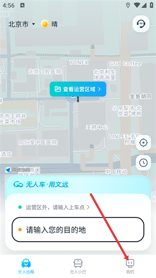 1、在無(wú)人車應(yīng)用的主界面,點(diǎn)擊底部導(dǎo)航欄的“我的”選項(xiàng),進(jìn)入個(gè)人中心頁(yè)面。