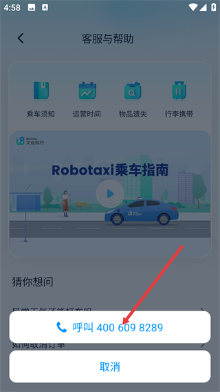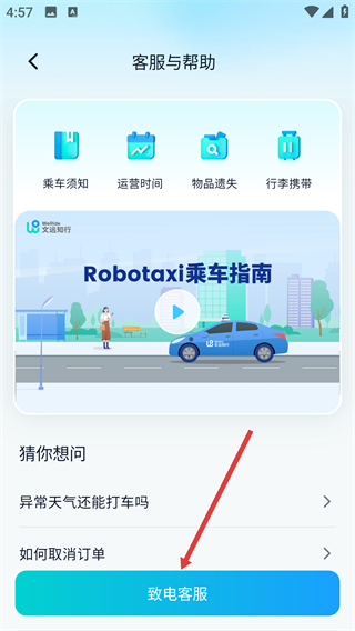 3、在客服與幫助頁(yè)面,點(diǎn)擊底部的“致電客服”按鈕,觸發(fā)客服電話的呼叫彈窗。