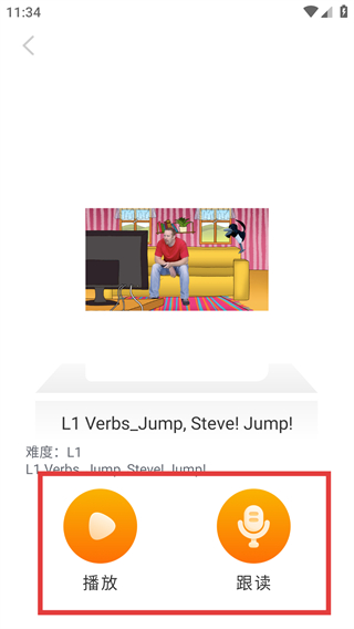 4、進(jìn)入繪本詳情頁面后,可點擊“播放”按鈕收聽內(nèi)容,或點擊“跟讀”按鈕進(jìn)行口語練習(xí),完成繪本類資源的學(xué)習(xí)。