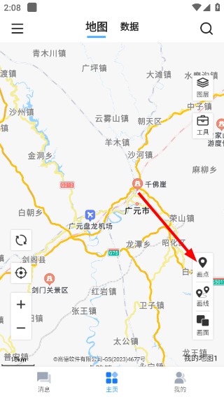 2、進入地圖主界面后,找到右側(cè)功能欄中的【畫點】選項,點擊該選項進入畫點操作頁面。