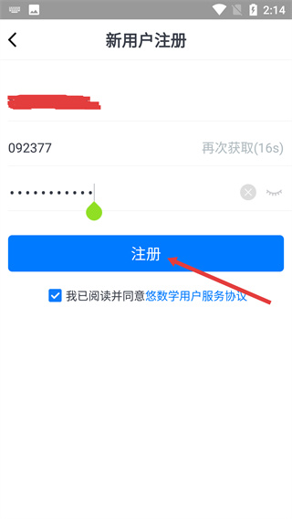 4、填好獲取的【驗(yàn)證碼】與設(shè)置的【密碼】后,點(diǎn)擊頁面中的【注冊(cè)】按鈕,完成新用戶的注冊(cè)流程。